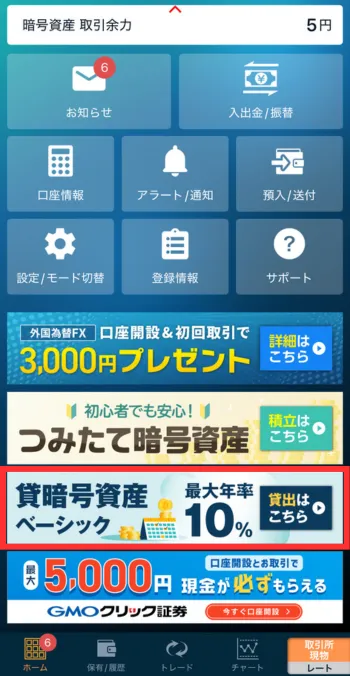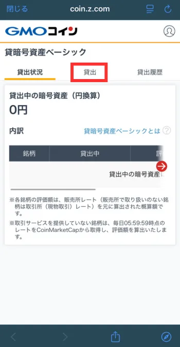 GMOコインの場合は「貸暗号資産」というサービスを利用してレンディングを行います。